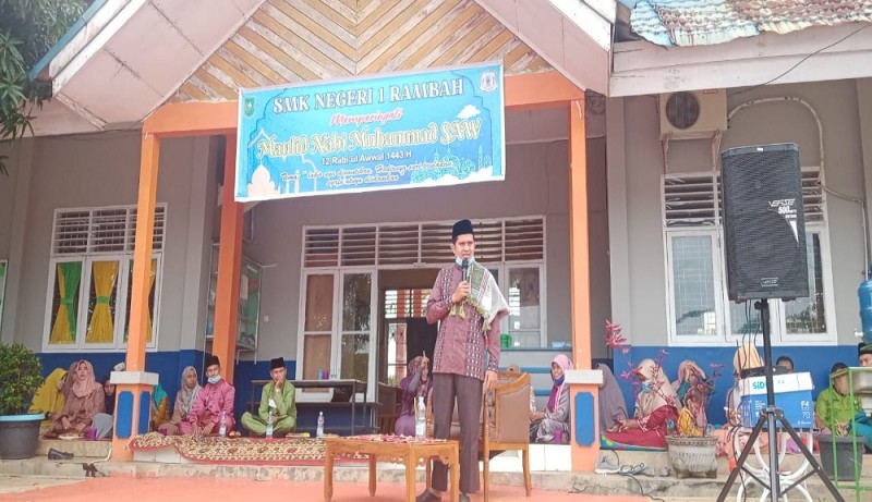SMK NEGERI 1 Rambah memperingati agenda maulid nabi besar Muhammad Saw 1443 H/ 2021. Agenda terbatas ini dihadiri ustadz Imam Syafei, S.HI sebagai DAI lokal kabupaten Rokan Hulu yang memberikan santapan rohani pada peringatan maulid ini. Pada momentum yang bertepatan ini, segenap keluarga besar SMK NEGERI 1 Rambah mengucapkan selamat Hari Santri Nasional 1443 H/ 2021 M. Semoga santri diseluruh Indonesia " BERTUMBUH, BERDAYA DAN BERKARYA "