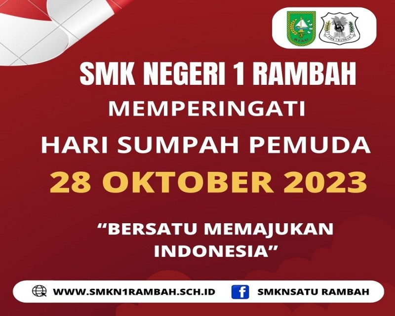 SMK Negeri 1 Rambah, Kab. Rokan Hulu. Provinsi Riau mengucapkan selamat memperingati hari sumpah pemuda Th. 2023. Mari " bersatu memajukan Indonesia "