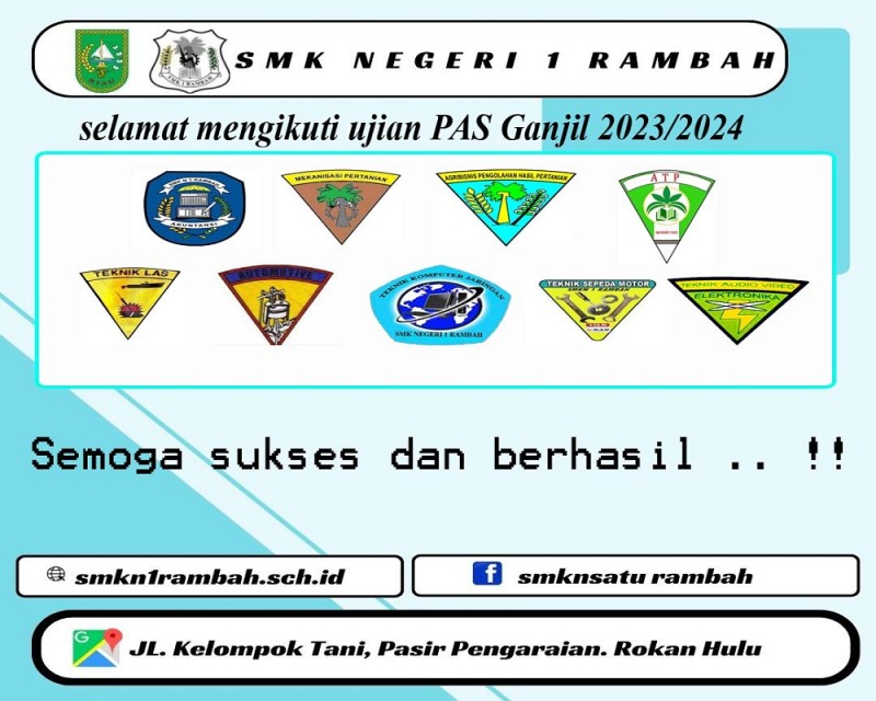 Selamat mengikuti ujian penilaian akhir semester ganjil th. 2023 - 2024. Semoga senangtiasa di berikan oleh Allah SWT kemudahan dan keberhasilan. Aamiin.