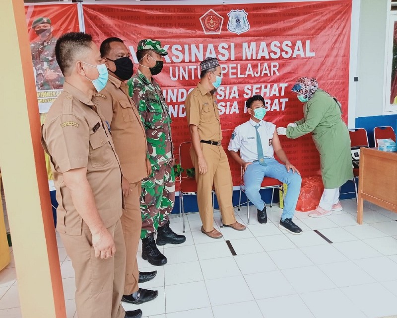 Ratusan Pelajar SMK Negeri 1 Rambah Lakukan Vaksinasi Covid 19
