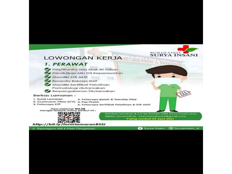 Assalamualaikum ..Diberitahukan kepada bapak/ ibu guru SMK Negeri 1 Rambah bahwasanya telah dibuka info lowongan pekerjaan bagi perawat di Rumah Sakit Surya Insani. Bagi bapak/ ibu guru yang mengetahui alumninya yang berminat menjadi perawat silahkan ajukan lamaran di Rumah Sakit...